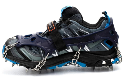 For backcountry hikers, the Hillsound Trail Crampon Ultra set offers the biggest and most plentiful spikes underfoot. The 18 stainless steel spikes are arranged at different angles to provide traction no matter which way your weight is distributed, so you’ll maintain grip walking both up and down hills. Those spikes are attached to six small metal plates, which also create traction.